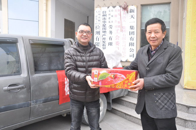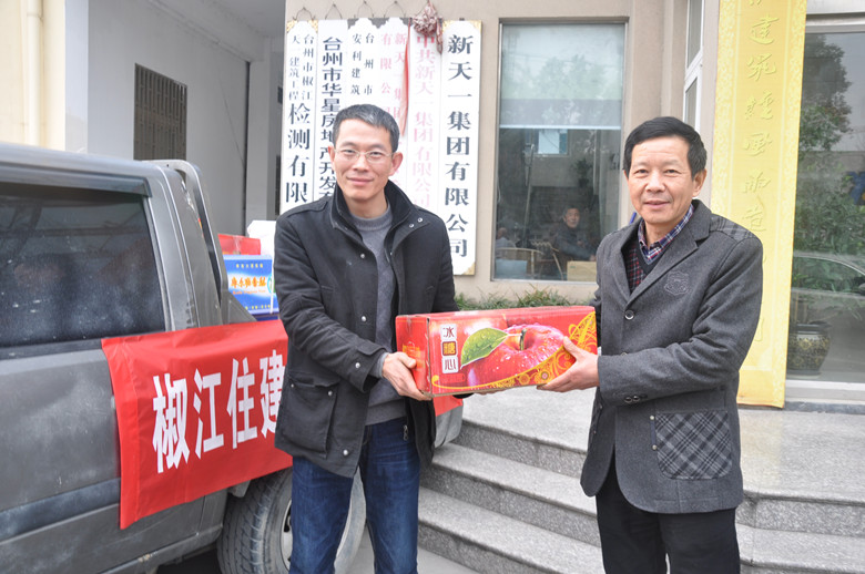 1月17日,椒江住房和城乡建设分局领导带着猪肉、年糕、苹果等节日礼品,慰问建筑工地工人,祝大家平平安安、节日快乐!