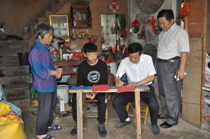 新天一集团党员结对困难学子6月28日上午,在椒江区前所街道陶家村学生陶小海家中,新天一集团有限公司党委书记葛昌雨与学生陶小海签订了结对助学协议书。