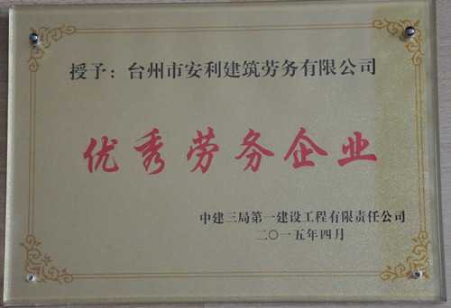 台州市安利建筑劳务有限公司评为:优秀劳务企业