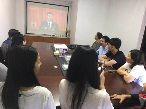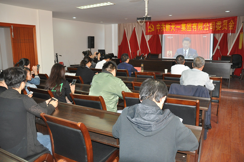 图为,新天一集团有限公司党员员工,收看学习十九大精神。