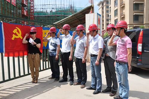 6月5日,在江西省赣州市时间公园工地,新天一集团有限公司第三党支部会议在这里举行。这一天,对于施工员曹纪光来说是难忘的一天,在支部大会上,他沉重地向党组织提交了入党志愿书,并在工地脚手架下举行入党宣誓。